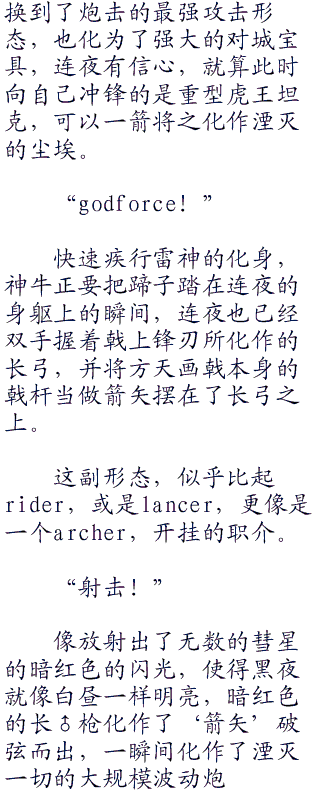 已经无需揣测,他的意图很明显,rider打算正面决斗。从他的眼中,可以看得出这种纯粹的战意。