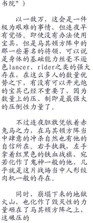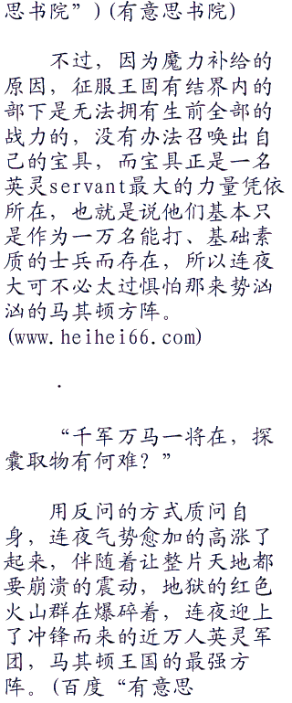 所以此时此刻,面对征服王伊斯坎达尔制造出来的‘固有结界,王之军势’,连夜所需要做的事情只有一件!
