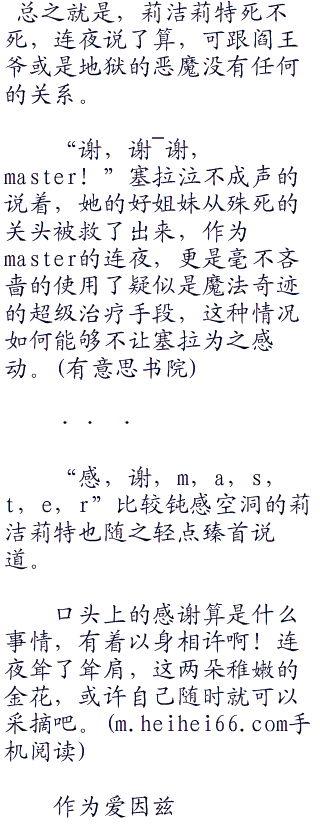 所以,连夜对于莉洁莉特守护不力,让‘小圣杯’被言峰绮礼窃夺走一点都不感到可惜。