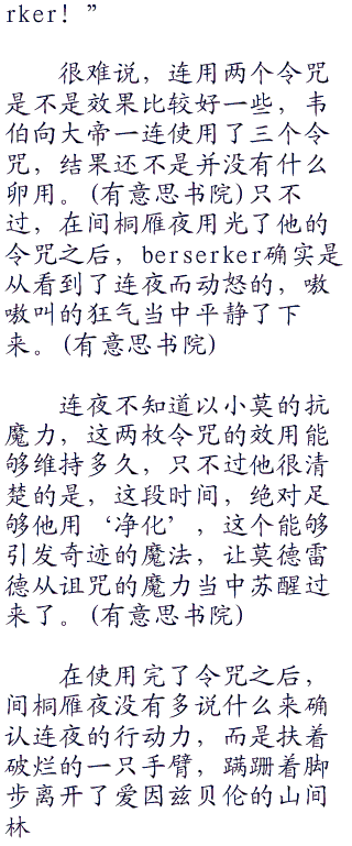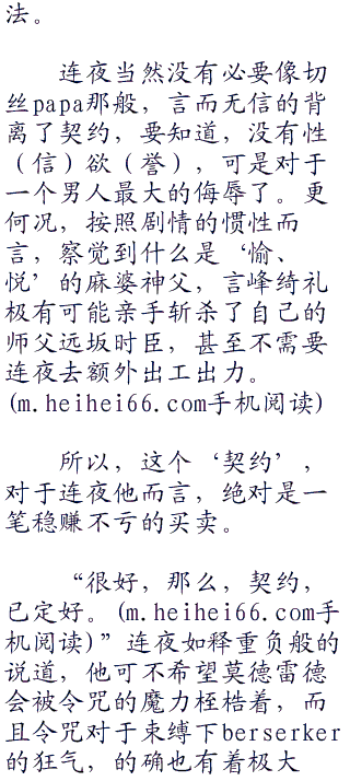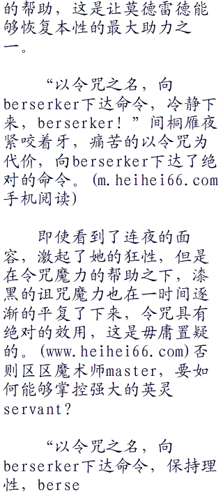 间桐雁夜也很清楚这一点,所以即使可以用令咒的力量控制berserker的狂暴,他也未曾想过自己能够驱使她杀死间桐脏砚这个老头子。