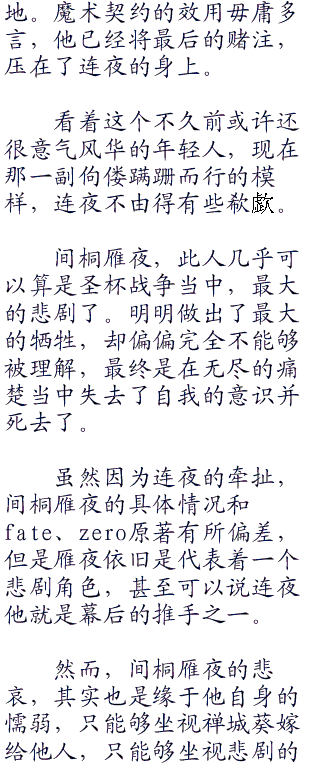 但是连夜却可以做到这一点,这无外乎证明了他也可以击溃远坂时臣,狠狠的打这个自诩优雅的魔术师的脸。