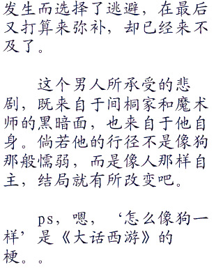 当然也不能够怪间桐雁夜对于‘亲人’的无情。实际上,间桐脏砚作为一个活了多年,还赖活着的老不死人物,和间桐雁夜自然是没有任何亲情可言的。很简单的道理,大概现在姓朱的人,绝对不会对往上推年,那些明国的朱姓人物抱有亲戚的感情。