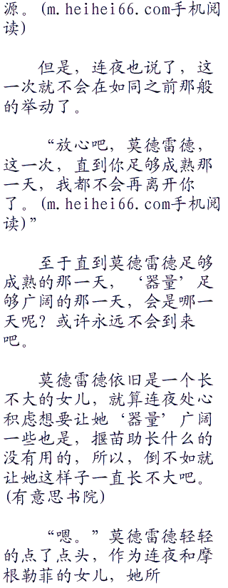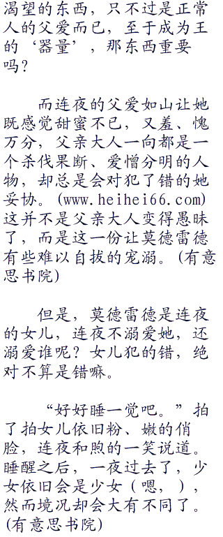 “对不起,父亲大人,我辜负了你的期待。”翠绿色的美眸微沉,莫德雷德此刻就像是犯了错的懵懂小女孩一般歪着脑袋,不敢和连夜对视。其实她本事一个相当顽皮狂气的少女,比起遵守骑士道本分的阿尔托莉雅要离经叛道得多了,大概性格就和连夜一般‘跳’,只不过现在却这样子一副委屈的模样