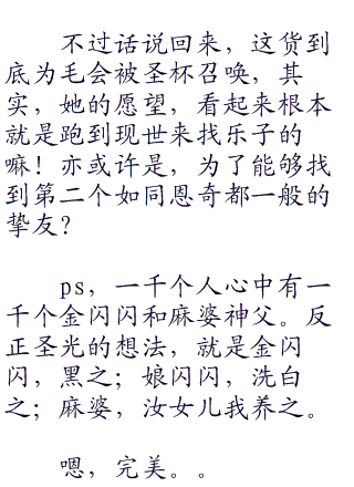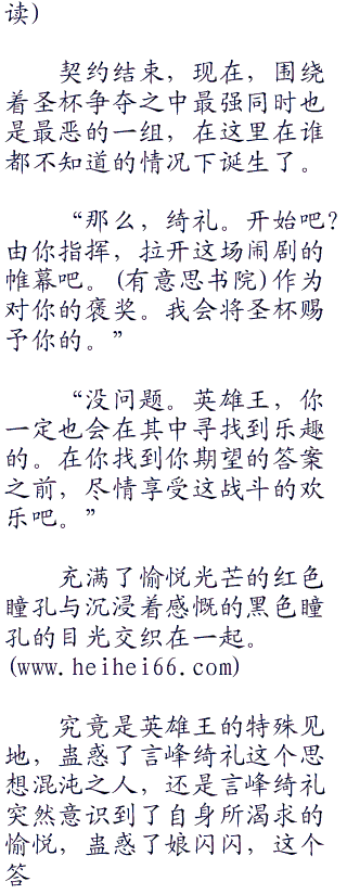 听到绮礼的讽刺,娘闪闪大声地笑了起来。“这么快就学会开玩笑了吗?绮礼,你的进步真是很大啊。”