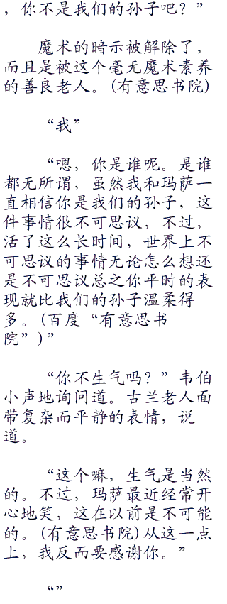 “”比起危机感和尴尬更能彻底地让韦伯受到打击的,是欺瞒了一个慈祥老者的羞耻感觉。