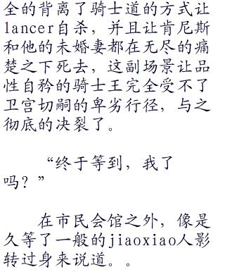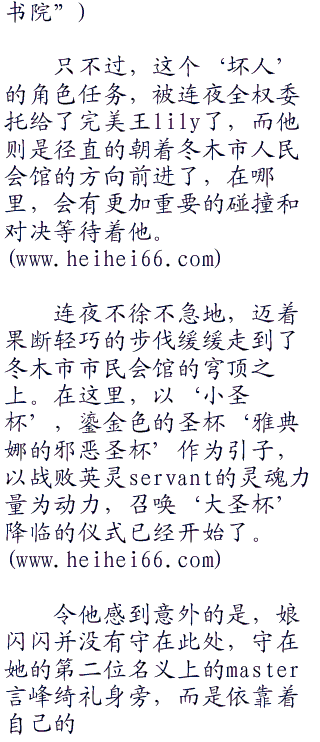 圣杯战争的第七个夜晚了啊,也应该让这场与不同时代,不同世界线的英灵servant作战的宏伟篇章落下帷幕了。