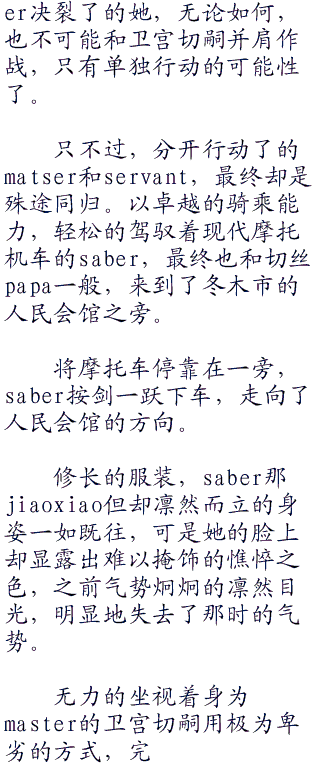 这意味着什么,恐怕所有人都很清楚,可以说这就是第四次圣杯战争的最后一战的集结号。