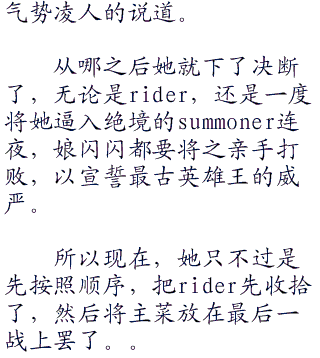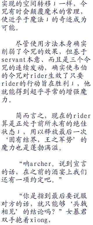 韦伯并非没有心理准备。他很清楚,那对手和suoner(召唤师)一样,是在圣杯战争当中早晚要面对的。