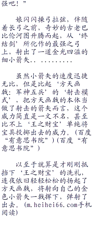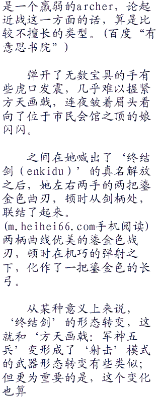 鎏金色华贵无比的终结剑,一左一右的出现在了娘闪闪的芊芊秀手中,不会双持双刀的弓兵,显然就不是一个好弓兵。