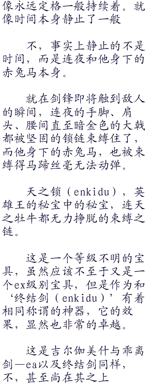 ‘固有结界’可以控制周围中程范围内的东西,将之收纳进固有结界当中,将人和外界的物体捕捉进固有结界当中,本质上来说,和将这些从天而降的纳比斯汀之怒涛收进‘固有结界,天崩地裂’当中是一样的。