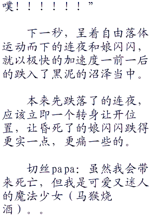 “我可没有办法理解”连夜干脆利落的说道。“倒不如说,我倒是希望你们这些一点都不珍惜眼前美好的人,稍微收束一下手脚,放低你们的姿态,收敛邪、欲与狂妄,务必秉持着尊重之心于此间人世行走。”