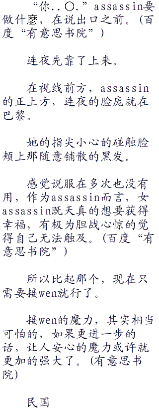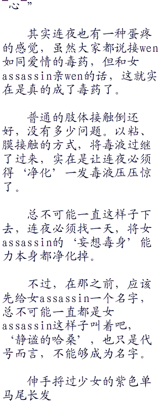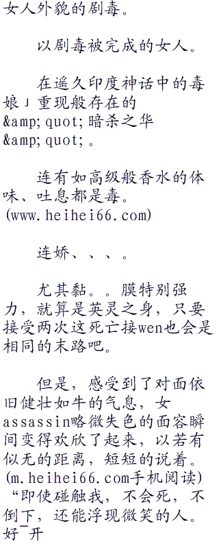 而且,她也有一些焦躁不安,因为她的手上,早已经沾满了各自的罪恶。“我是只能杀人的人。就算这样,我也能在您身边服侍您吗?”