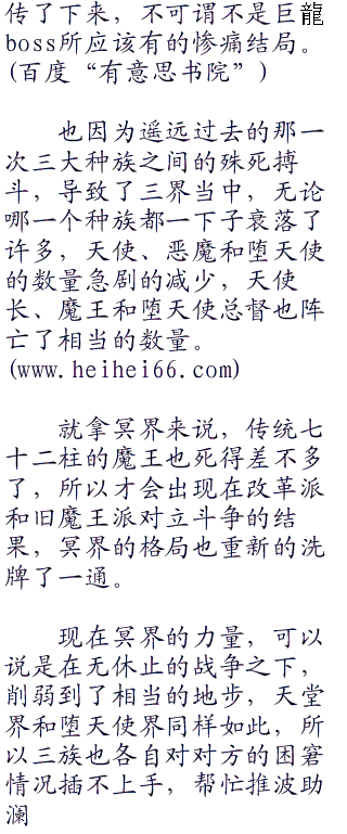 然而就算是‘赤龍帝’和‘白龍皇’两大即使在三界当中都煞有威名的‘二天龍’,最终也被三界联合起来的力量杀死了,甚至赤龍帝和白龍皇死后的躯体,都被抽筋扒皮制作成了强大的道具而流