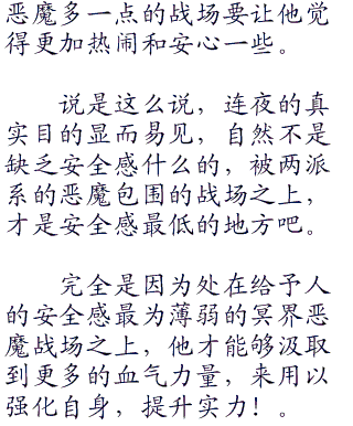 虽然成了那君临冥界的魔王很像是一个大好的男儿所应该有的志趣,即使是偶然抵达了冥界,连夜也应该从今天开始做魔王,以成为最后的大魔王为志向和目标才对,不过一时间,连夜还没有蠢到直接往冥界王城‘莉莉丝’之上撞的想法。