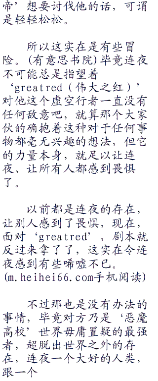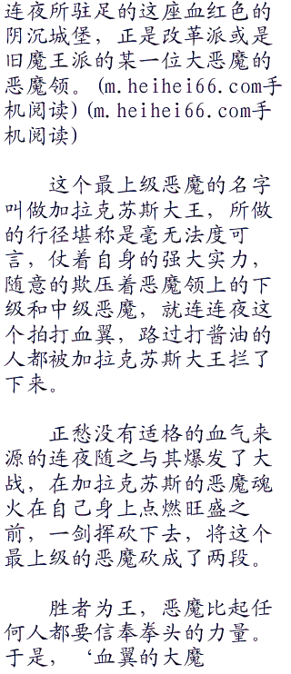 不管冥界原来的恶魔们是怎么样的一个想法,反正大抵和连夜没有多大的干系,反正他在主战场的后方,安安心心的收集着大量的血气贮藏在了‘鲜血魔井’当中。