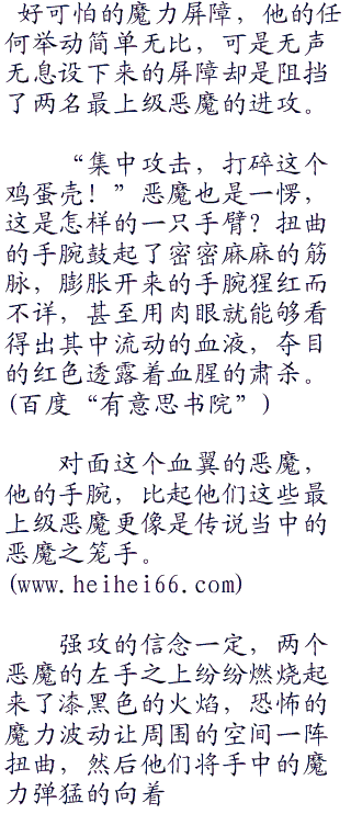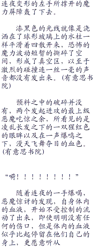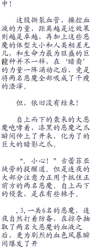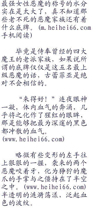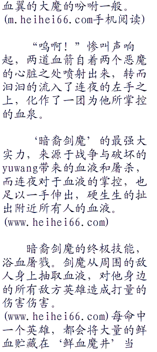 本来恶魔应该是一种生命力极为顽强的存在,即使心脏破碎,都还有将之补足并且苟延残喘的活下来的可能性,然而被似乎有着生命力的魔剑洞穿了之后,恶魔们可以清楚的察觉到自身血液的流动,被魔剑极速的汲取并且啜饮的错觉。