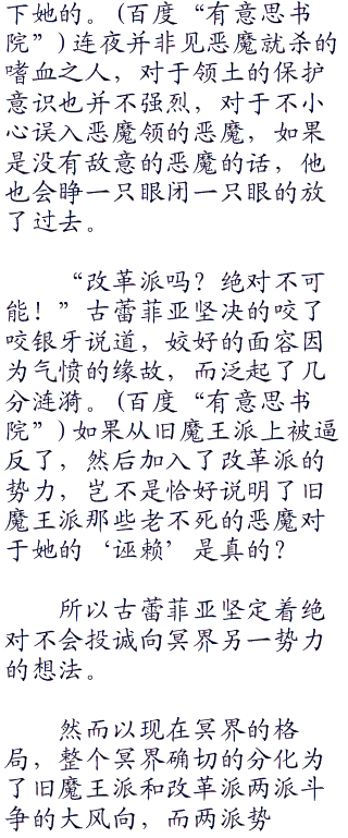 按照正常的发展轨迹,古蕾菲亚就是再怎么忠诚于‘魔王路西法’之名,再怎么侍奉这个名号的强者,恐怕也得被改革派和旧魔王派一手推动的勾心斗角之上,被迫反水了旧魔王派,最后走投无路的她,无奈之下只得投靠了原本是敌人的改革派。