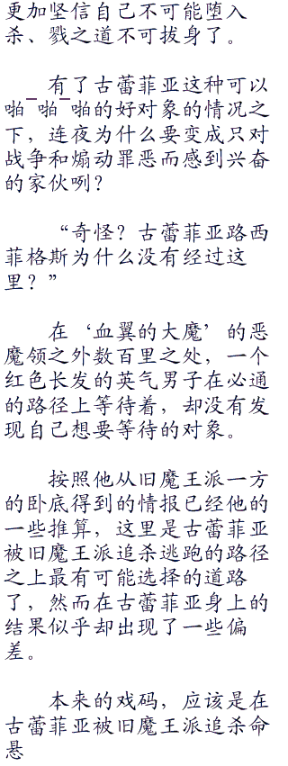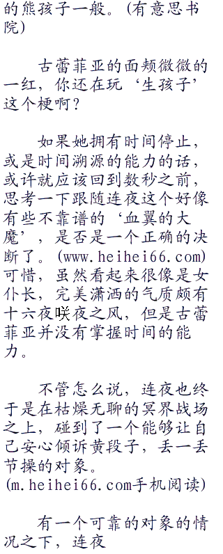 虽然古蕾菲亚误入了‘血翼的大魔’的恶魔领,但是如果她非得有新的去向而离开的话,连夜大抵也是没有办法强留