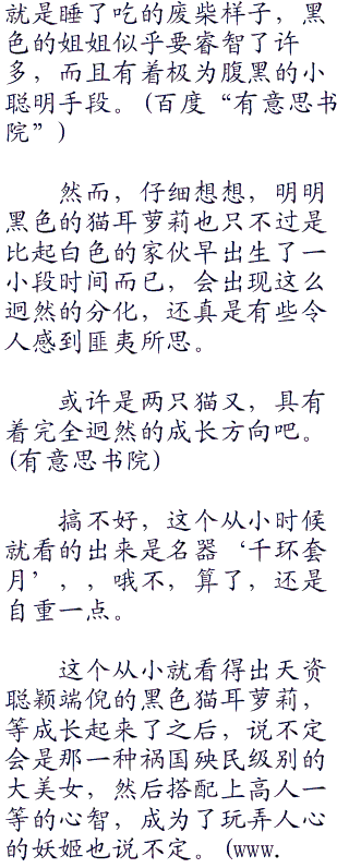可能因为是传说当中,千年才会出现一次的,猫妖当中的特殊种族,两条尾巴的‘猫又’的缘故,黑白的两只小萝莉很早,或者说是刚刚出生就变幻为了‘猫耳萝莉’的形态,所具有的天赋和能力,也称得上是相当的不错。