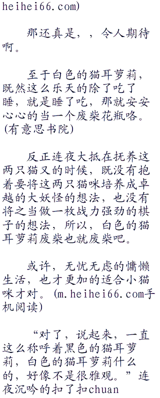 虽然说了黑色猫耳萝莉的那里是名器,做出了这种荤笑话的点评让古蕾菲亚对自己发了一顿火,但是连夜依旧对这两只小猫咪的成长感到乐此不疲。