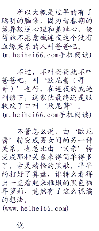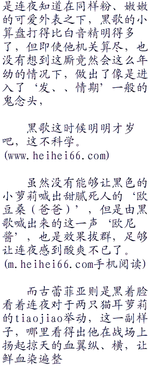 然而,黑歌就和白音不一样了。竟然在连夜多次的威逼利诱之下,也不愿意改口叫他爸爸。