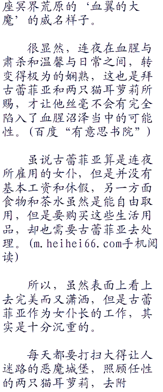 收养了两只猫妖小萝莉,而古蕾菲亚在恶魔城堡内照顾两只萝莉,连夜则是时常飞出了恶魔领,将‘血翼的大魔’的威名传播得愈加的深远。