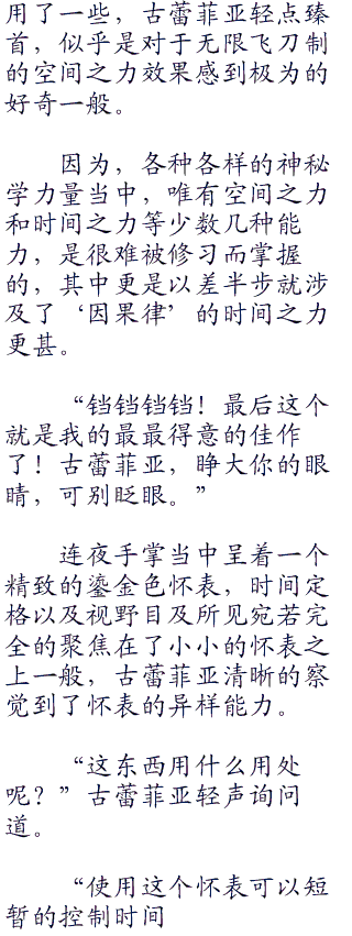 “”难得呆萌的偏斜了一下臻首,古蕾菲亚很贴心的将之当做了默认的回答。