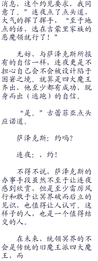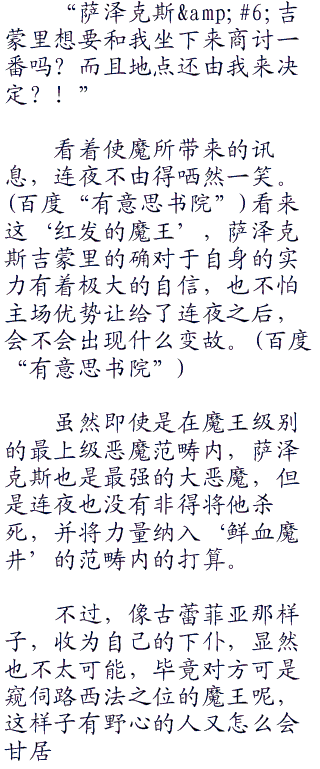 “既然如此,我们就向那位恶魔表示商谈的意见吧,不知道让他坐下来谈一谈,他是否回愿意呢?”放下了古蕾菲亚的事情,萨泽克斯转而说道。