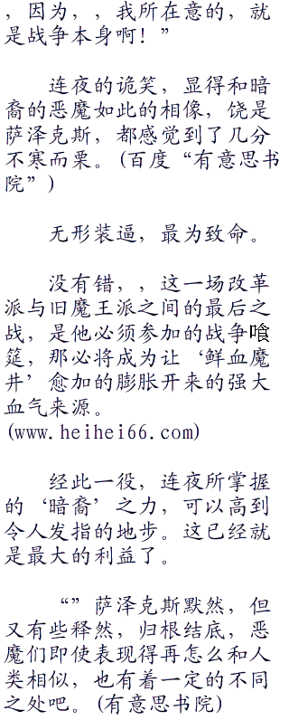 作为恶魔而言,连夜的志趣不可不说是石破惊天,比起冥界的任何人都要来得胜出一筹,在冥界的诸位强大的最上级恶魔还在盯着‘四大魔王’之位而角逐的时候,他就已经想着要打上天堂山、云中城了。