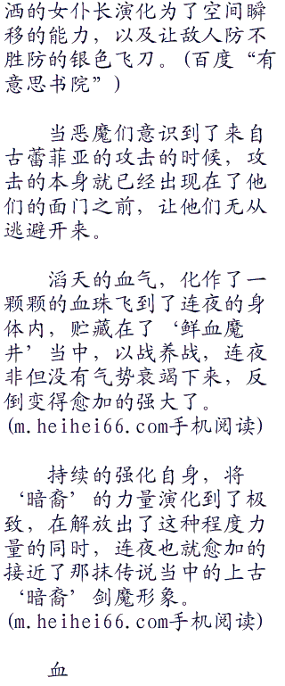 伴随着连夜手中的魔剑剑刃纷飞,行云流水,并且游刃有余的攻击动作,血红色的痛苦利刃纵、横,暴力但是优雅的攻击手段,深深的感染了战场的其他人。