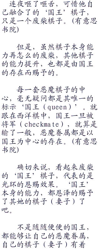 不但恶魔可以选择一个职介高位的棋子,高位的棋子,同样也需要极为强大的天赋和能力,才能够完美的与之契合。