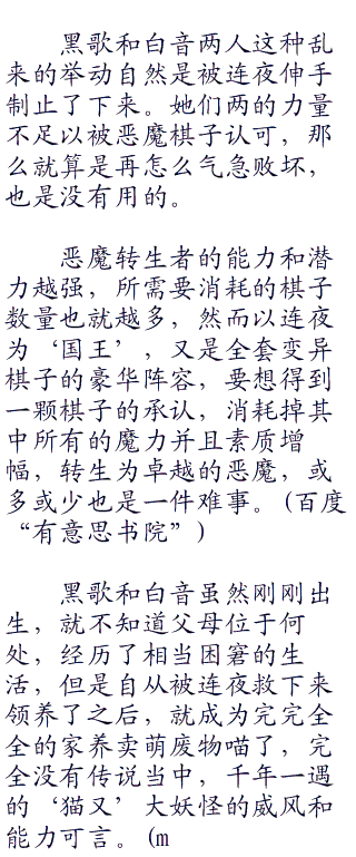 但是,更为强大的力量,则是用于转生人类,大妖怪,使徒,等等非恶魔类的存在,将之转生为恶魔。只不过,比起将本来就已经是恶魔了的家伙转化为恶魔眷属,将恶魔种群之外的存在,转生为恶魔,显然中间的变化要多了不少。