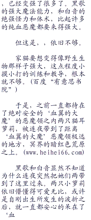 无他,只是因为他知道黑歌和白音不是那一种只希望停留在自己的恩荫之下,成为百无一用的家养卖萌废物喵,要想激发出野性,将血脉当中‘猫又’的能力发挥出来,也只有离开他,两只小猫咪才能够做到这一点。