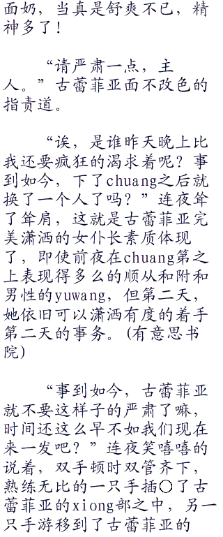 提及这样子的事情,古蕾菲亚倒是没有什么不好意思的表情,只是一脸遗憾的摸了摸自己的小腹。“只可惜属下太没用了,至今都不能为主人怀上血脉。”