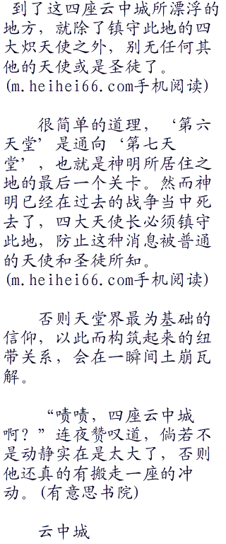 四座充满了莹莹圣光的云中城,分别成圆形,排列在‘第六天堂’的四个方位。