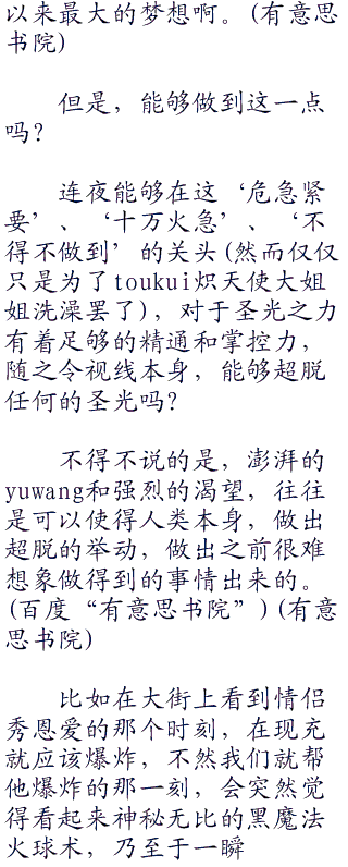 仿佛是路过的圣骑士大叔拿着短小的锤子,拿着一本书典,然后释放出了圣光术,遮蔽了这时间一切勾引人内心玉wang的邪恶场景。