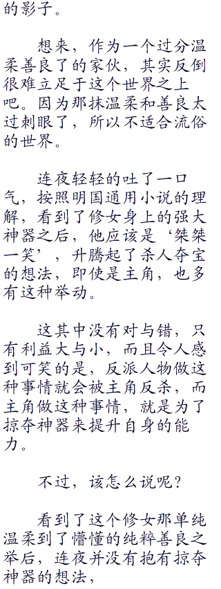 但他已经对于这个过程感到极度的厌烦了,倒不如说,无休止的重复浴血屠戮和血气吸纳这一个过程的话,到最后即使力量成长到了相当惊人的程度,留下的也只是那繁花血景消逝了之后,愈加令人感到低落的感觉呢!