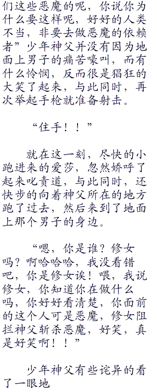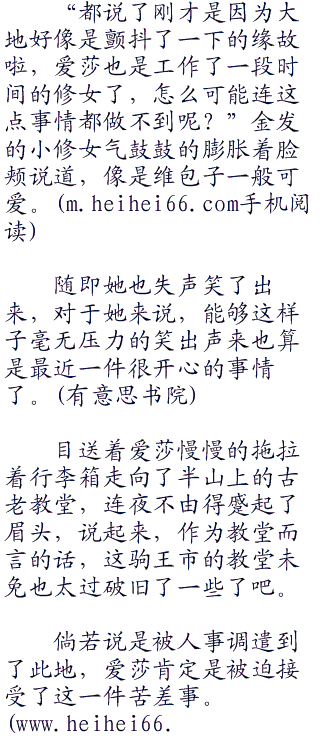 “诺,教堂就在眼前了,到了这里,应该就不会再不懂得走了吧,爱莎。”连夜遥遥的指了指位于半山腰位置的古老教堂说道。