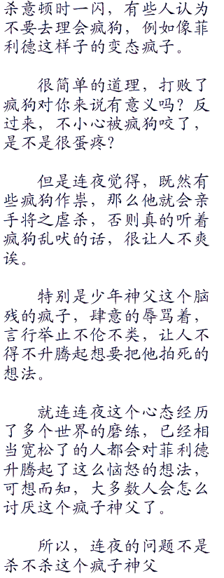 以往处在了猎人(混ter)的位置上,少年神父菲利德最喜欢折磨猎物,迷失恶魔或是恶魔依赖者了,但是现如今,他反倒是处在了猎物(the混ted)的位置之上,这是心理变态而扭曲的他,无法接受的事情。