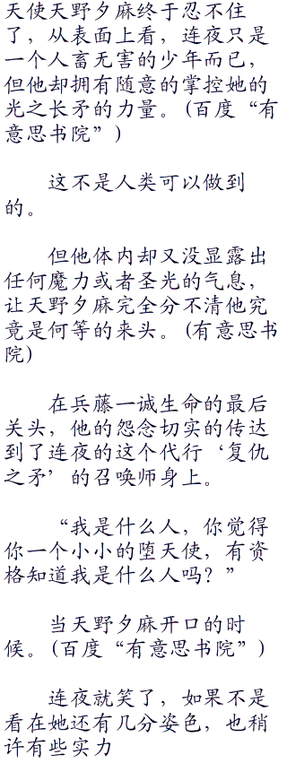 不过,现在想来,无缘无故和天野夕麻成为了男女朋友丝毫不值得兵藤一诚感到兴冲冲并且炫耀一番,这种突如其来的事情,最终证明对于他而言是一场灾难,是一个使他深陷其中的‘局’。