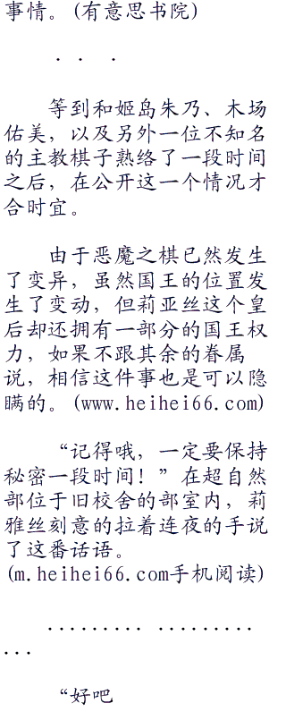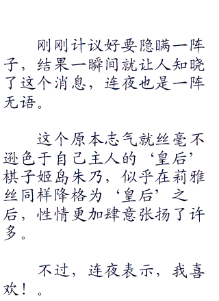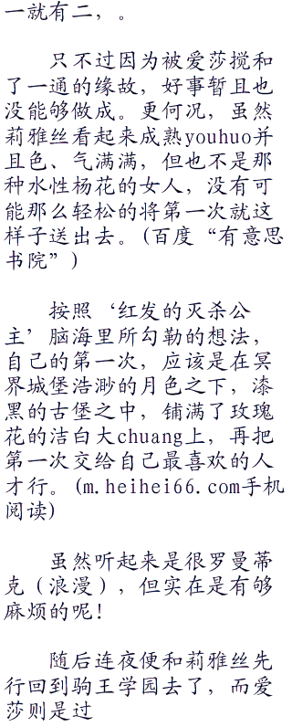不明事理的金发小修女一阵胡闹,直至连夜和莉雅丝脸色无奈的解释了相当的一段时间,才让爱莎气闷闷的鼓着脸颊,心神不宁的继续祝告去了。