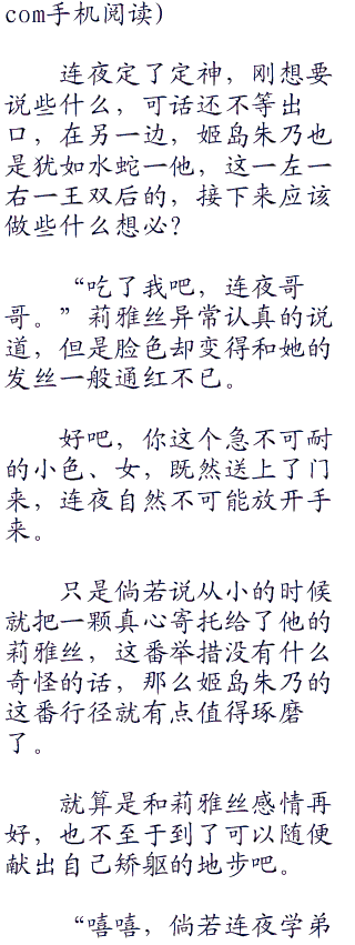 就在连夜感到讶异之际,床上的莉雅丝突然掀开了被子,只见她的身上只是穿着一件单薄的白色长袖衬衫,光洁剔透的白皙长、、,脸上带着些许的犹豫和红晕。