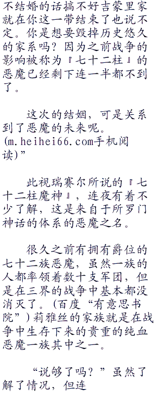 “没错。基本上你是自由的。去上大学也没问题,下仆也可以按喜好选择。但是,你的父亲大人还有萨泽克斯大人很担心啊。害怕吉蒙里家断后。