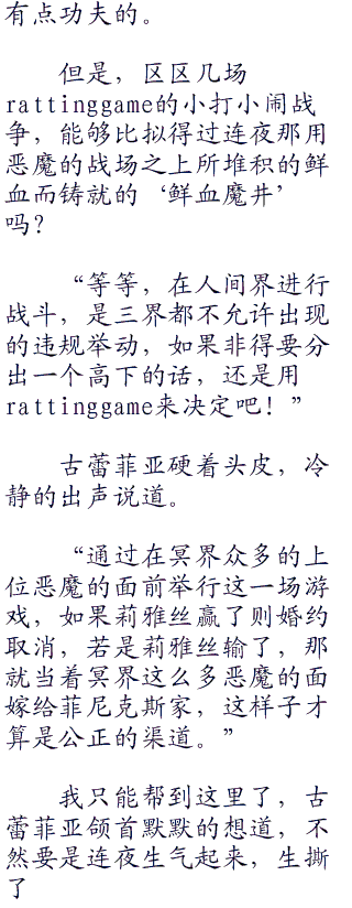 “啊,以前也听过呢。但是,莉亚丝,不可以这样做不是吗?我觉得你应该也被父母那“三九零”边逼得相当的紧才对的吧?”