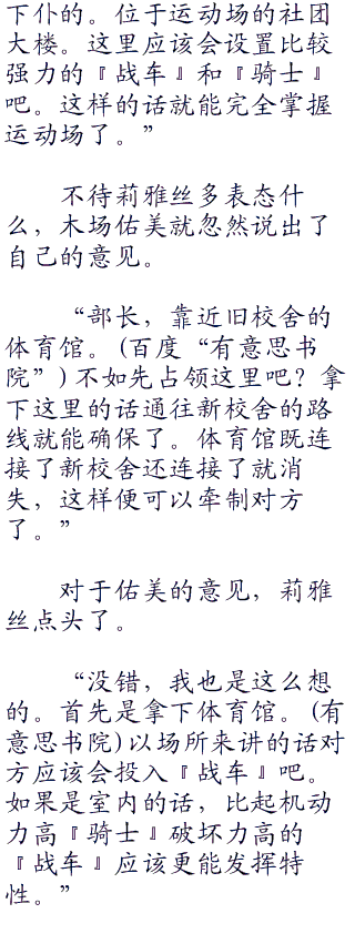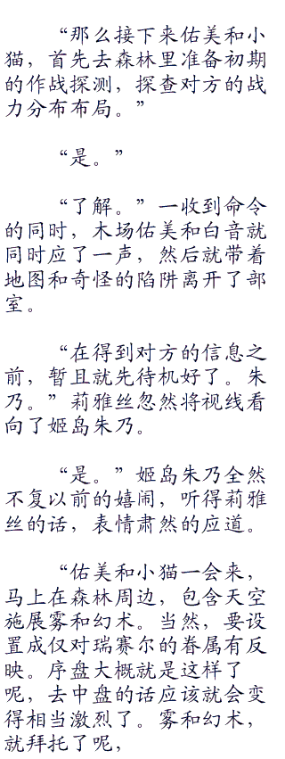 “好了,不击破瑞赛尔的『士兵』可不行呢。要是八名全员都『提升』成为『女王』的话可是很麻烦的呢。”