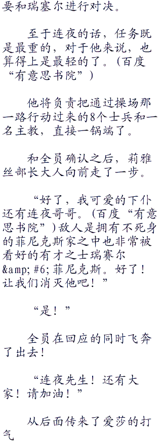 因为着人数上面的优势,以及着对于己方的实力有着绝对的自信,所以瑞赛尔完完全全就没有采取什么布局之类的事情,直接让自己的妹妹以及其余的十四名眷属,分为了两路攻向了莉雅丝的