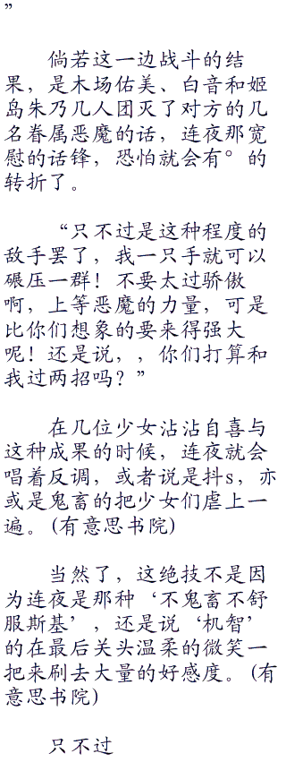 虽然结果都是姬岛朱乃的退场,但是和连夜所推算的不一样的是,因为人数上的优势,对方的‘女王’优路贝娜的确可以相当游刃有余的让自己处在条件优渥的位置,然后寻找合适的攻击时机,而姬岛朱乃则是被迫倾尽了大部分的魔力,召来了大规模的雷电魔法。
