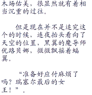 瑞赛尔的女王优贝露娜,称号为‘炸弹女王’,擅长魔力的凝集,以及爆炸魔法。