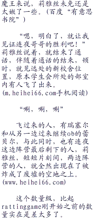 “瑞赛尔&a;a;#6;菲尼克斯少爷,‘女王’一名击破!”时间没有过多久,属于古蕾菲亚的冰冷冷的声音宣告了出来。