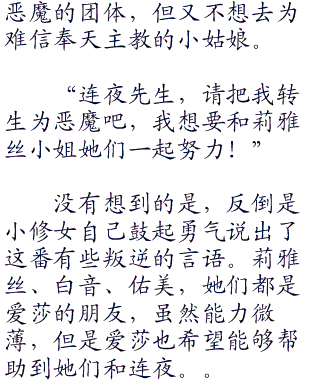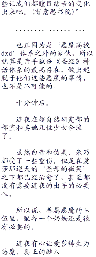 现袭名‘路西法’之名的魔王萨泽克斯在商讨中强调,站在新的历史起点上,必须谨记十年前的恶魔内战以及更早之前的三大种族战争的教训,为了实现‘恶魔’与人类求同存异、共同发展的奋斗目标,实现整个‘改革派恶魔’的梦想,必须适应当前各个恶魔的不同情况、准确判断恶魔与人相处形势新变化、深刻把握每一个转生恶魔的新要求,以更加积极有为的切实行动,推进更高水平的同‘人类’的相互交往,加快实施转生恶魔的战略,加快构建和谐共处型的人类与恶魔交往方式,以更为开放的方式建设具有xx特色的xx主义,恶魔与人的和谐社会。